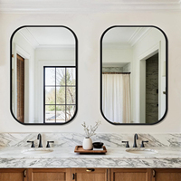 Espelho do banheiro do grande retângulo com cantos arredondados Metal moldado para sobre o dissipador